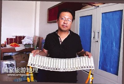 說起他們引以為傲的骨雕作品時,哈斯達來老師告訴記者,那就是經(jīng)過40多人花費4個多月時間純手工雕刻,于2008年8月完成的《蒙古秘史》。為了完成這件藝術(shù)作品,他們從3000多頭牛中挑選出6000塊牛大骨(每頭牛只有2塊牛大骨),再從中選出同樣尺寸的4000多塊牛大骨,然后經(jīng)過消毒、打磨,選用了其中的1400塊進行雕刻。骨雕作品《蒙古秘史》共12章282節(jié),長32米,寬15厘米,現(xiàn)陳列于內(nèi)蒙古師范大學(xué)文學(xué)館內(nèi),正在申報吉尼斯世界紀(jì)錄。哈斯達來老師希望通過此種形式,進一步展現(xiàn)骨雕藝術(shù)的魅力。有了經(jīng)驗以后,2009年8月,他們又完成了《蒙古秘史》的第二次雕刻,這次的作品長29米,寬12.4厘米,骨頭厚度0.3厘米,現(xiàn)陳列于該校的展覽館內(nèi)。