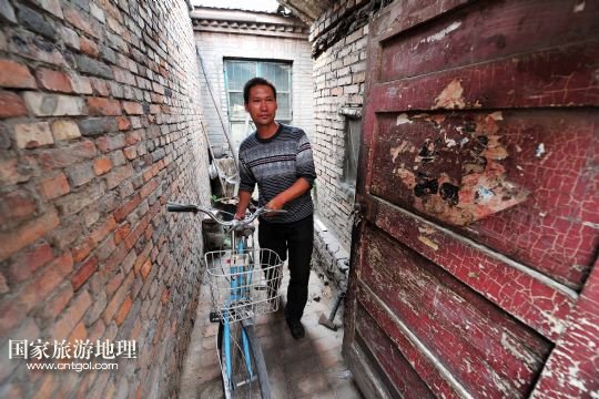在寧夏回族自治區(qū)石嘴山市大武口區(qū)人民街道工人街社區(qū)的原洗煤廠老舊小區(qū)內(nèi),46歲的馬連生推著自行車走出屋子。他在這里已經(jīng)居住了14年(9月3日攝)。