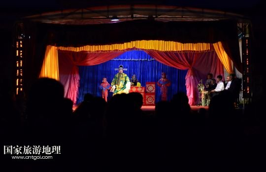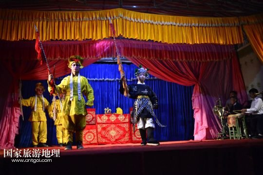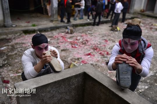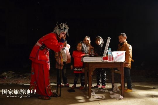 國家旅游地理 江西九江4月2日訊 在溪口鎮(zhèn)小溪村,三元班在演出寧河戲《三請樊梨花》(3月26日攝)。寧河戲是江西地方大型古老劇種之一,發(fā)源于江西修水縣,流行于贛北及湘、鄂、贛交界一帶。在寧河戲鼎盛的清乾隆年間,曾出現(xiàn)過“寧州十八班”,從業(yè)人員達到六七百人。然而隨著時代的變遷,寧河戲逐步?jīng)]落,最大的危機是逐漸空心化的村莊和村莊里越來越少的老戲迷。