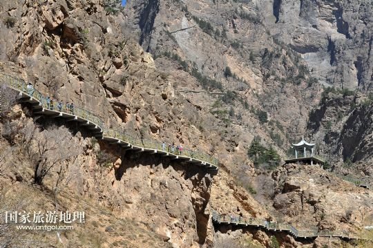 國家旅游地理 寧夏銀川5月4日訊 5月3日,游客在蘇峪口高山崖壁棧道上游覽觀光。當日是“五一”小長假的最后一天,在寧夏蘇峪口國家森林公園內,“五一”剛剛開放迎客的寧夏首座高山崖壁棧道——蘇峪口高山崖壁棧道迎來眾多游客。
