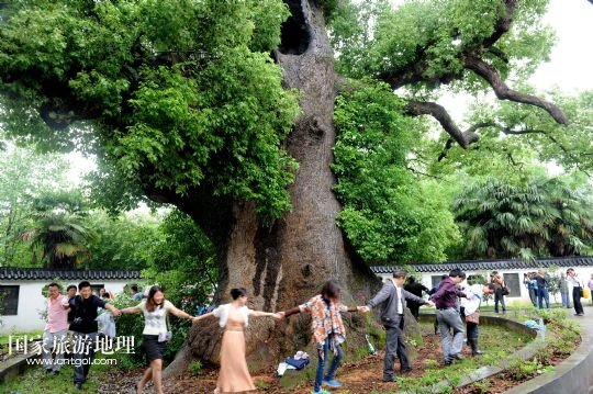 國家旅游地理 江西上饒5月18日訊 5月17日,游客在江西省德興市海口鎮(zhèn)??诖迩旯耪僚酝嫠?。江西省德興市??阪?zhèn)海口村有一棵1800多歲“高齡”的巨型古樟樹,歷史上曾遭受過多次雷擊、火災(zāi)等,其中最近的一次發(fā)生在2010年10月1日,由于村內(nèi)孩童進入可容納幾十人的樹洞內(nèi)玩耍,不慎引發(fā)火災(zāi),致使大火從樹洞里燒起,讓這棵千年古樟幾近滅頂。此后,當?shù)卮迕褡园l(fā)捐款近6萬元,請來有關(guān)專家救治。經(jīng)過近4年的精心護救,如今這棵千年古樟再度逢春,枝繁葉茂,吸引了各方游客前來觀賞。 /新華社發(fā)(卓忠偉 攝)