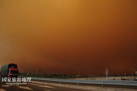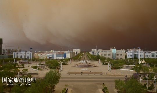國家旅游地理 甘肅玉門5月23日訊 5月23日,在甘肅玉門市,突如其來的沙塵籠罩了整個(gè)城市。當(dāng)日上午,受新疆低槽冷空氣的影響,甘肅玉門境內(nèi)天空出現(xiàn)罕見的云層奇景和沙塵天氣,原本非常晴朗的藍(lán)天,霎時(shí)天昏地暗,同時(shí)伴有6至7級西風(fēng),能見度只有500米。新華社發(fā)(楊旭升 宋常青 攝)