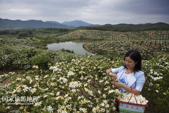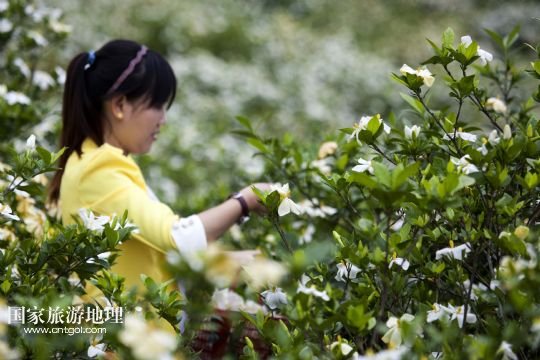 國家旅游地理 江西九江5月24日訊 5月24日,游客在黃梔子種植基地采摘梔子花。小滿時(shí)節(jié),在位于鄱陽湖畔的江西省九江市都昌縣土塘鎮(zhèn)潭湖村的坡嶺上,春輝黃梔子專業(yè)合作社6個(gè)種植基地的兩千多畝黃梔子全面進(jìn)入盛花期,種植園內(nèi)芳香四溢。黃梔子是傳統(tǒng)中藥材,花朵可觀賞、食用,果實(shí)可用于醫(yī)藥、染色、化妝品等領(lǐng)域。成立于2007年的都昌春輝黃梔子農(nóng)民專業(yè)合作社近年來致力于實(shí)施科技推廣、標(biāo)準(zhǔn)化種植和專業(yè)化經(jīng)營黃梔子,將黃梔子從“飄香”經(jīng)濟(jì)延伸到“染色”“藥用”深加工,進(jìn)軍省內(nèi)外市場。 /新華社發(fā)(傅建斌 攝)
