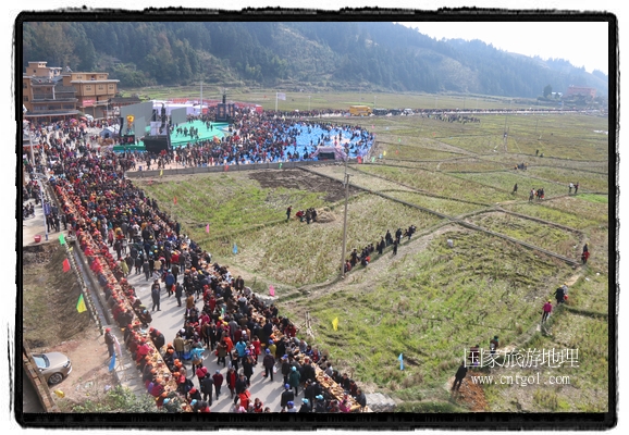 今年黎平侗年節(jié),除了延續(xù)亙古以來老百姓過侗年的各項傳統(tǒng)習(xí)俗活動外,還有“天下侗家年”大型侗族史詩情景歌舞展演、侗族萬人長桌宴、招商引資推介會、七彩田園采摘體驗、百村集市商品展銷、侗文化研討會、楊再思文化交流研討會等多項主題活動,其中,主打主推的“最大合攏宴”(萬人長桌宴)品牌,得到基尼斯紀(jì)錄總部到現(xiàn)場認(rèn)定,以1700桌合攏宴,總長3.7公里,10380人同桌就餐,創(chuàng)歷史之最,成功載入《基尼斯紀(jì)錄大全》,吸引數(shù)萬旅游客到場親自見證、參與、感受和體驗這一千載難逢,氣勢恢宏的盛況。