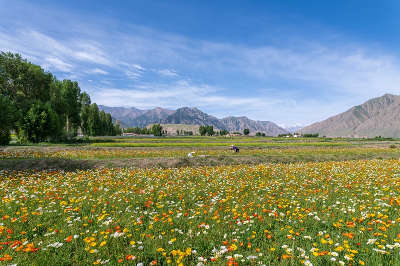 時(shí)值盛夏,地處祁連山北麓高海拔山區(qū)的甘肅省高臺(tái)縣新壩鎮(zhèn)紅沙河村種植的虞美人繽紛綻放,形成花海景觀。近年來,高臺(tái)縣新壩鎮(zhèn)將花卉蔬菜制種作為特色產(chǎn)業(yè)來抓,積極引導(dǎo)農(nóng)戶規(guī)模化、集中化種植,成為當(dāng)?shù)剞r(nóng)業(yè)增效、農(nóng)民增收的支柱產(chǎn)業(yè)之一。