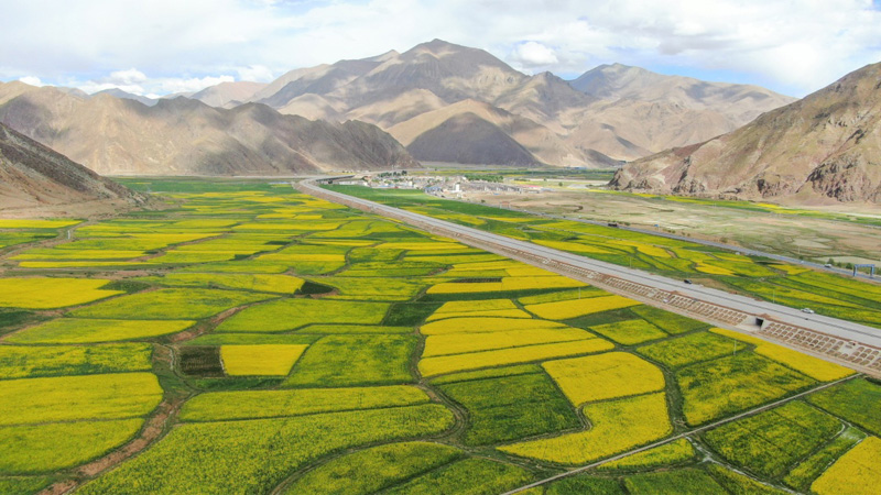 西藏各地的油菜花盛開,呈現(xiàn)出生機勃勃的夏日美景